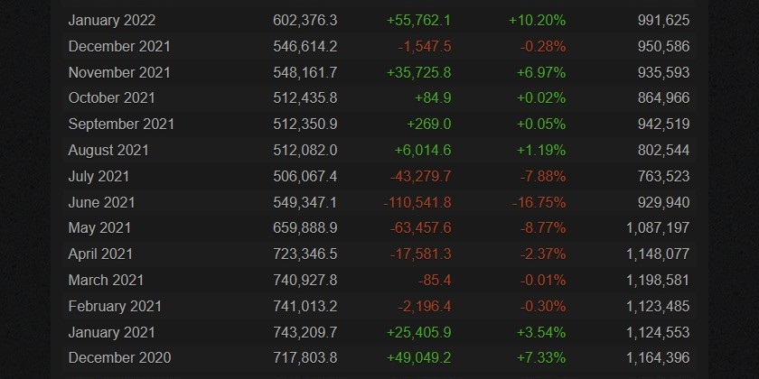 Les statistiques de décembre 2020 à janvier 2022 (c) Steam Charts