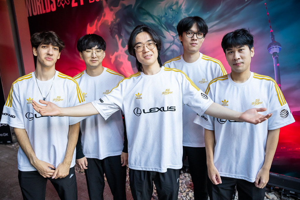 Ce qui distingue 100 Thieves est la jeunesse de son effectif. Avec une moyenne d'âge de 21,8 ans, l'équipe figure parmi les plus jeunes du tournoi. Le toplaner Sniper, à seulement 17 ans, est le plus jeune joueur des Worlds 2024, tandis que Quid, le midlaner, n'a que 20 ans. Il est également à noter qu'à l'exception de River, le jungler vétéran passé notamment par PSG, Dignitas et Golden Guardians, aucun des autres membres de l'équipe n'avait d'expérience sur la scène internationale avant ces Worlds.