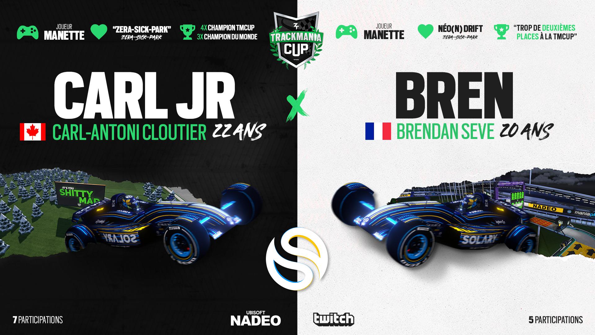 Le septième duo n'est autre que l'équipe Solary, composée de Brendan "Bren" Seve, qui a "trop de secondes places à ZrT Trackmania Cup" comme il le dit lui-même, et de Carl-Antoni "CarlJr" Cloutier, triple champion du monde et quadruple vainqueur de la ZrT Trackmania Cup.