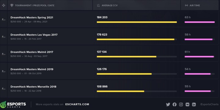 Tout d'abord au niveau des records, la DreamHack Masters Spring 2021 a tout simplement explosé tous les résultats jusque là détenus notamment en ce qui concerne l'audience maximale puisqu'un pique à 551 278 a été atteint, du jamais vu pour cette compétition. Le précédent record remontait à 2017 avec la DreamHack Masters Las Vegas et ses 448 581. Les téléspectateurs étaient donc au rendez-vous, et nul doute que les performances des formations en provenance de l'Est de l'Europe ont grandement joué dans cette performance. Et cela même si à Las Vegas la finale opposait déjà une équipe russophone (Virtus.pro) face aux géants danois d'Astralis. En terme d'audience moyenne, cette fois encore la DreamHack Masters Spring 2021 est en tête avec une moyenne sur la longueur de l'ensemble de l'événement se situant à 184 203 téléspectateurs, elle bat ainsi une fois de plus le rendez-vous de 2017 qui avait rassemblé en moyenne 178 623 personnes. Idem concernant la durée des retransmissions, en 2021 les organisateurs sont parvenus à diffuser 63 heures de contenu contre un précédent record de 61 heures lors de la DreamHack Malmö 2017. Cela accrédite une fois de plus les excellentes performances réalisées au cours des 7 jours qu'aura duré le tournoi.