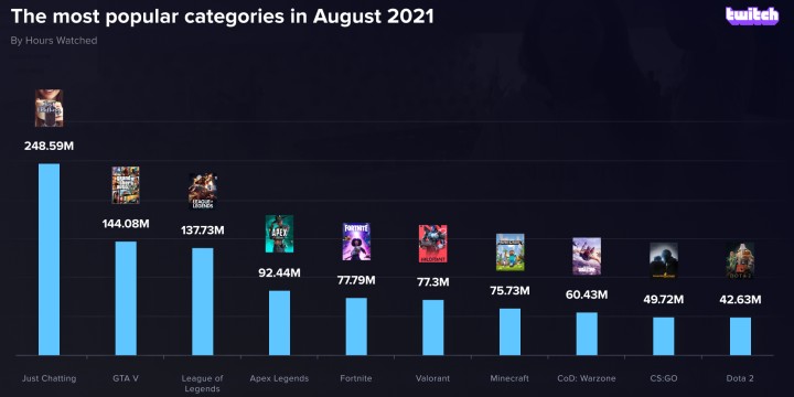 Du côté de Twitch c'est un peu la même chose, le mois d'août a été plutôt calme en terme de compétitions même si depuis la reprise le 16 août beaucoup d'événements ont pu reprendre comme l'ESL Pro League Saison 14 qui se joue actuellement. Toutefois Counter-Strike: Global Offensive reste à une honorable neuvième place des jeux les plus regardés avec 49,72 millions d'heures visionnées. C'est moins bien qu'en juillet (58,54 millions) mais le retour en LAN lors de l'ESL One Cologne avait grandement boosté les statistiques. C'est donc ce mois d'août 2021 qui devrait marquer le point de bascule du jeu, la suite de la saison sera donc à observer avec attention dans l'optique de comparer ces résultats avec ceux de 2019, date à laquelle le titre poursuivait son développement en-dehors de toute pandémie de coronavirus.