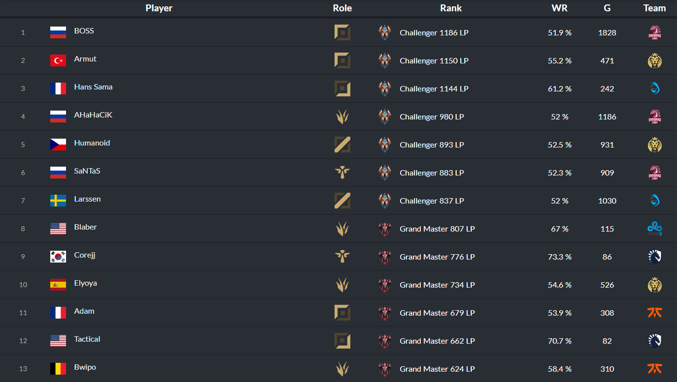 D'après lolpros.gg, Blaber a été le premier joueur non européen qualifié pour les Worlds 2021 à atteindre le rang Challenger sur le serveur EU West.