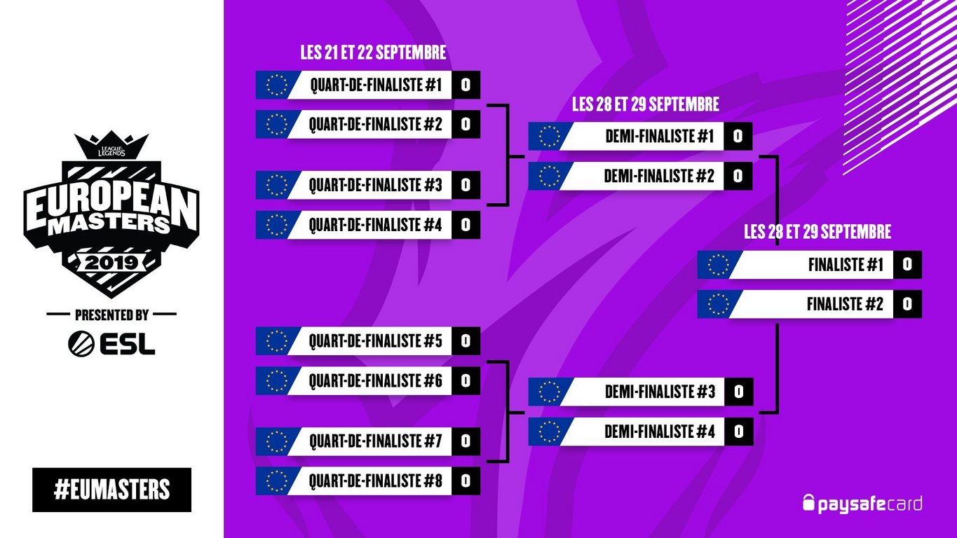 our la première fois, la phase de groupes sera organisée en fonction des places obtenues par chaque région durant les anciens European Masters, l'idée étant d'augmenter le niveau de la compétition et de proposer des matchs de la plus haute qualité tout au long du tournoi.