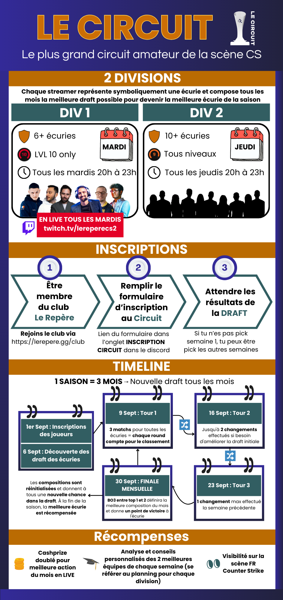 Le niveau de jeu d’équipe a chuté ces dernières années et il fallait trouver une initiative concrète et soutenable dans le futur. Le Circuit permet à la fois aux joueurs de progresser, aux streamers d’avoir du contenu fun tout en étant plus proches de la scène, et à la scène amateur elle-même de gagner en visibilité. C’est une vitrine utile pour les équipes subtop ou les académies qui cherchent à recruter de nouveaux profils.