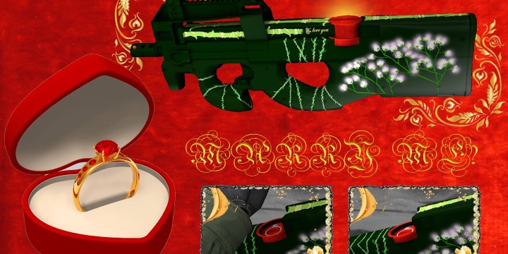 Le message a été posté il y a un peu plus d'une semaine sur le Reddit de CSGO par un utilisateur au pseudonyme imprononçable de ejqespiritu. Ce dernier nous explique comment il a découvert Counter-Strike en 2014 grâce à sa compagne et pourquoi le P90 a une histoire particulière pour eux deux. Vivant ensemble actuellement, le couple avait réduit son temps de jeu et avant de désinstaller le FPS de son ordinateur notre amoureux avait envie de faire une surprise à celle qu'il aime. Il a donc créé un skin d'un P90 avec une petite surprise dessus, il a ensuite demandé à sa futur femme de venir jouer prétextant un motif quelconque et l'a ensuite laisser s'amuser avec sa création. Elle a mis du temps avant de comprendre, mais pendant ce temps notre ejqespiritu attendait patiemment de surprendre sa bien aimée. Lorsque celle-ci s'est aperçue en inspectant l'arme qu'il y avait une bague cachée sur son skin de P90, elle s'est retournée et a eu la surprise de voir celui qui partage sa vie à genou pour la demander en mariage.