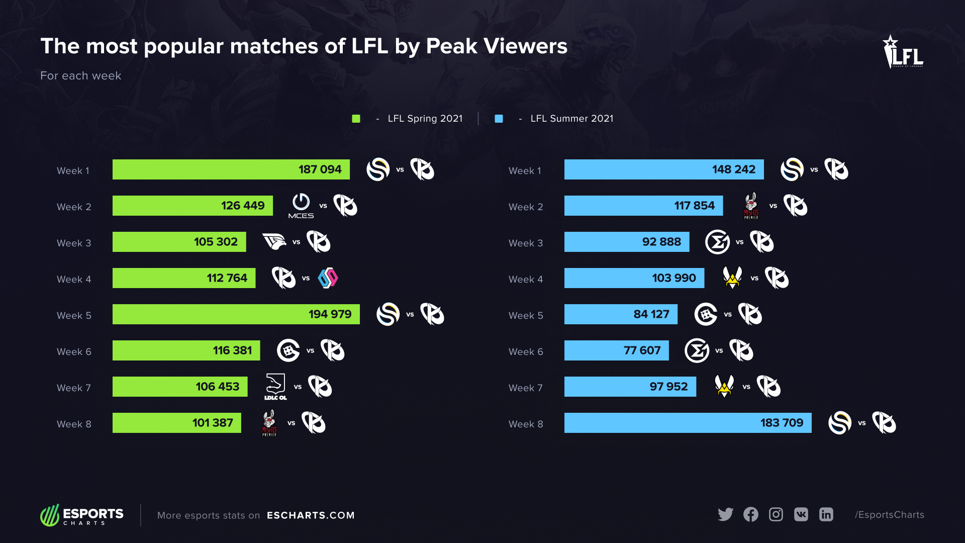 Outre le facteur Karmine Corp, il ne faut pas non plus sous-estimer l’enthousiasme suscité par la création de la nouvelle chaîne OTP par Chips et Noi, ni l’augmentation conséquente du niveau de jeu global des équipes, qui a permis à la LFL d’être à ce jour la ligue ERL la plus regardée en Europe. Mais cette montée en popularité survenue cette année en LFL va très certainement se frotter au possible gain en notoriété de la ligue espagnole SuperLiga la saison prochaine, haussant ainsi de plusieurs crans la saine rivalité qui existe entre ces deux ligues ERL. Avec l’arrivée d'Ibai et de Gérald Piqué au sein de la ligue espagnole, la fusion de Fnatic avec Team Queso et les diverses rumeurs, la SuperLiga évoluerait donc avec 2 à 3 équipes académiques, 3 clubs de football et un panel des meilleures et plus importantes organisations esportives d’Espagne. En 2021, La SuperLiga a enregistré cette année un pic d'audience de 50 002 viewers au Spring et de 73 006 viewers au Summer. À défaut de pouvoir battre les équipes françaises dans la Faille de l'invocateur, l'Espagne cherchera certainement à faire mieux en termes d'audience la saison prochaine, même surpasser la LFL ne sera pas une mince affaire.