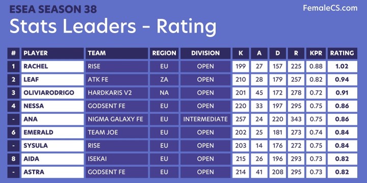 Valorant a permis l'apparition d'un nouvel eldorado où les Françaises se sont très rapidement engouffrées. On retrouve notamment les filles de chez TENSTAR Nova qui comptent dans leurs rangs la championne du monde 2014 sur CSGO Clara "Cla" Rossi. On pourrait citer également des Lux Nova coachées par le banni de CSGO Morgan "B1GGY" Madour ou tout simplement expliquer que depuis le mois d'avril 2021 plus d'une dizaine de compétitions 100% féminines se sont jouées sur Valorant, pendant que Counter-Strike: Global Offensive n'avait pas suffisamment de candidates pour participer à son Ambush Summer Cup 2021. Et malgré cette situation de bascule quasi-complète sur un nouveau jeu, certaines survivantes poursuivent leur aventure sur le FPS de Valve cette fois en jouant dans des équipes ou des tournois mixtes. C'est le cas des filles de Counter Logic Red en Amérique qui n'ont plus aucune concurrence féminine sur leurs terres et se sont donc lancées dans l'aventure de la Fragadelphia 15 il y a quelques semaines en jouant l'étape qualificative de Denver puis les finales de Philadelphie. Ou encore quelques visages ici ou là qui émergent en ESEA dont la Française la plus connue est certainement Rachel "racheLL" Kujawa, classée meilleure mondiale individuellement il y a quelques jours.