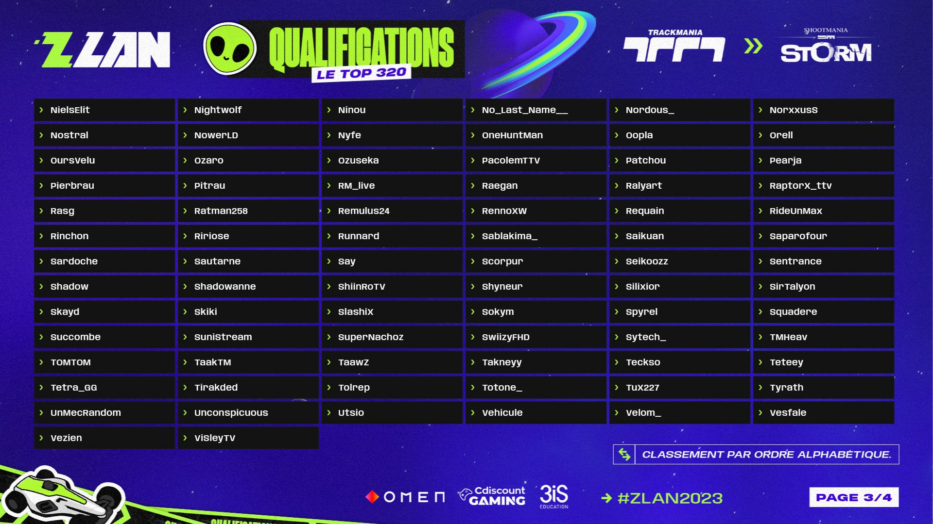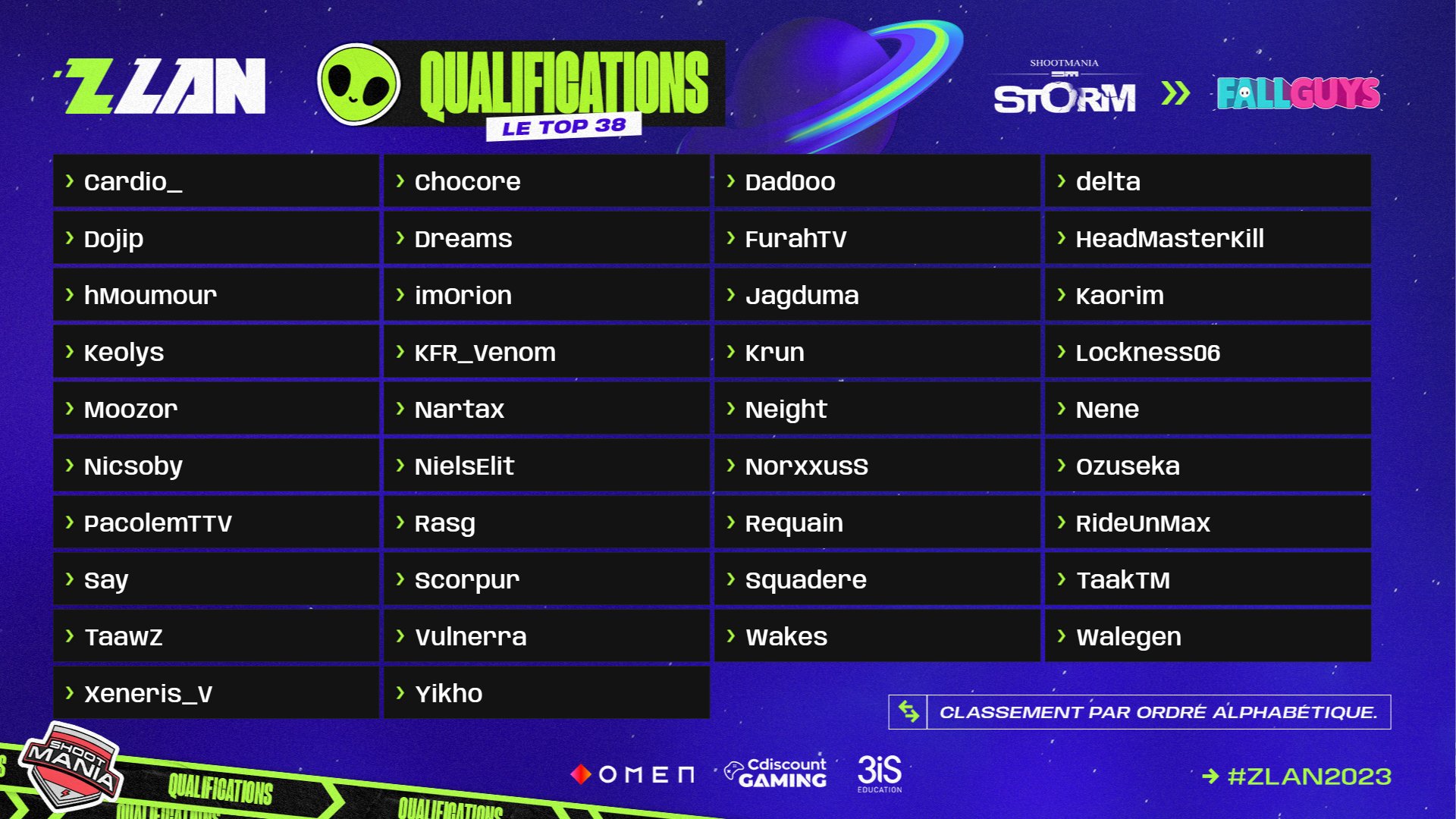 Et voici la liste des joueurs et joueuses sélectionné.es par le tirage au sort pour la Z LAN 2023 :