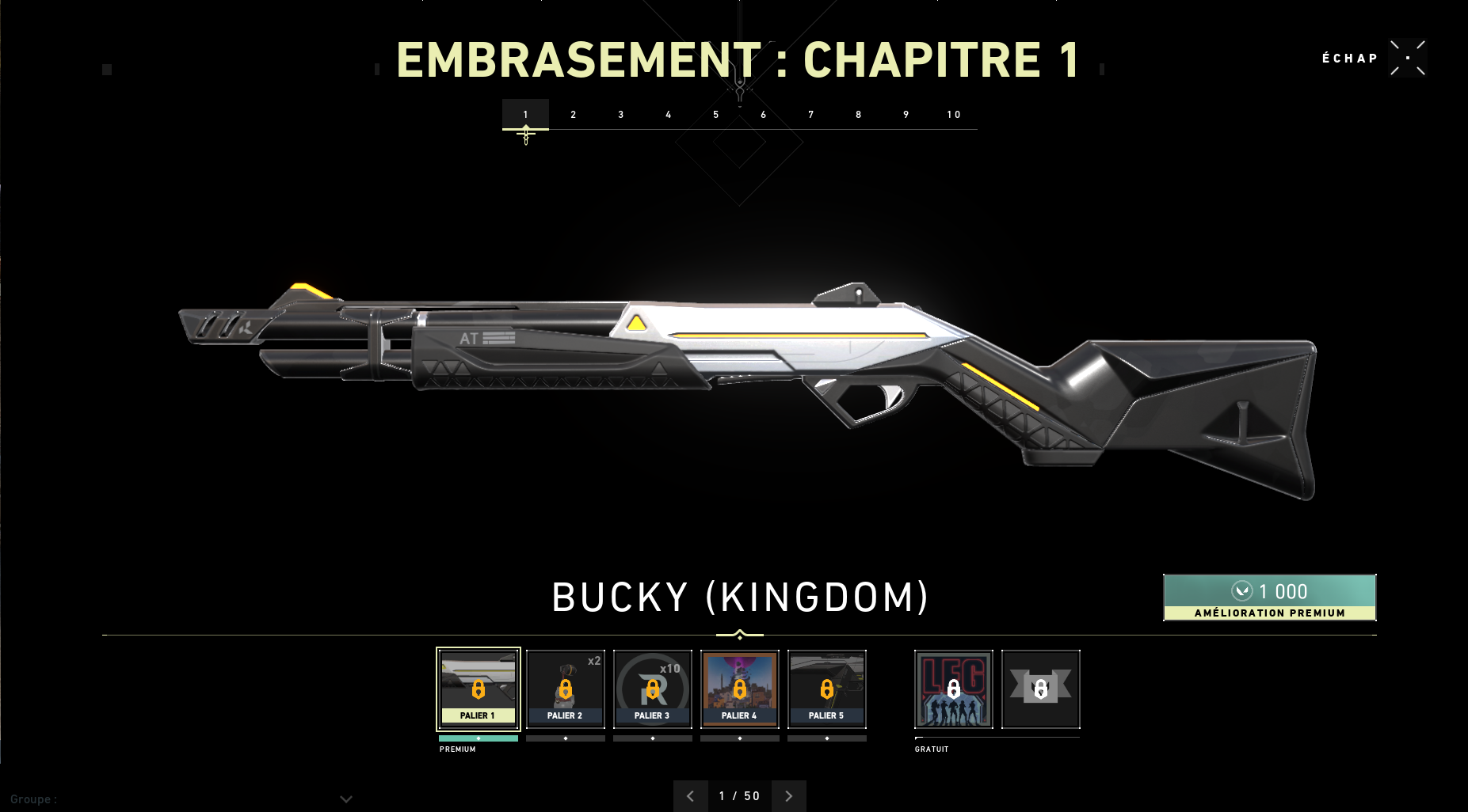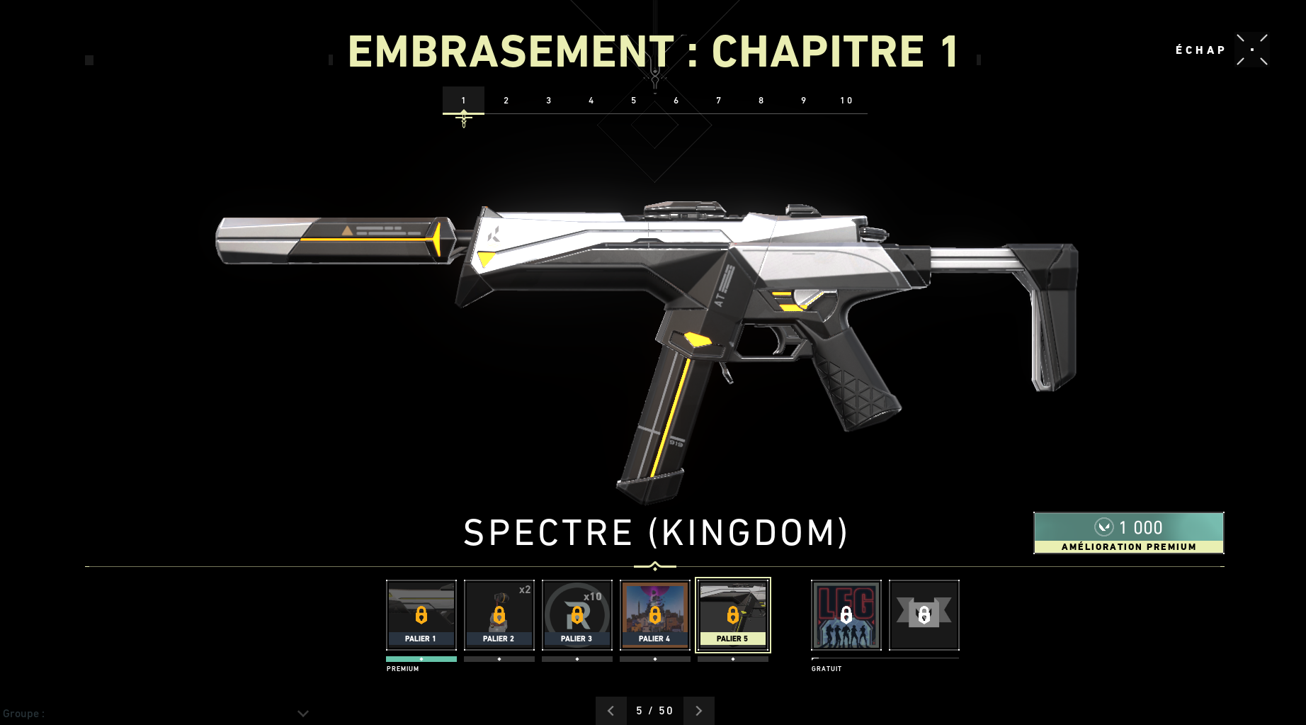 Les joueurs sans passe premium gagneront aussi tous ces types de récompenses ainsi que le skin « Classic (Kingdom) » des armes de poing en récompense finale du chapitre 10.