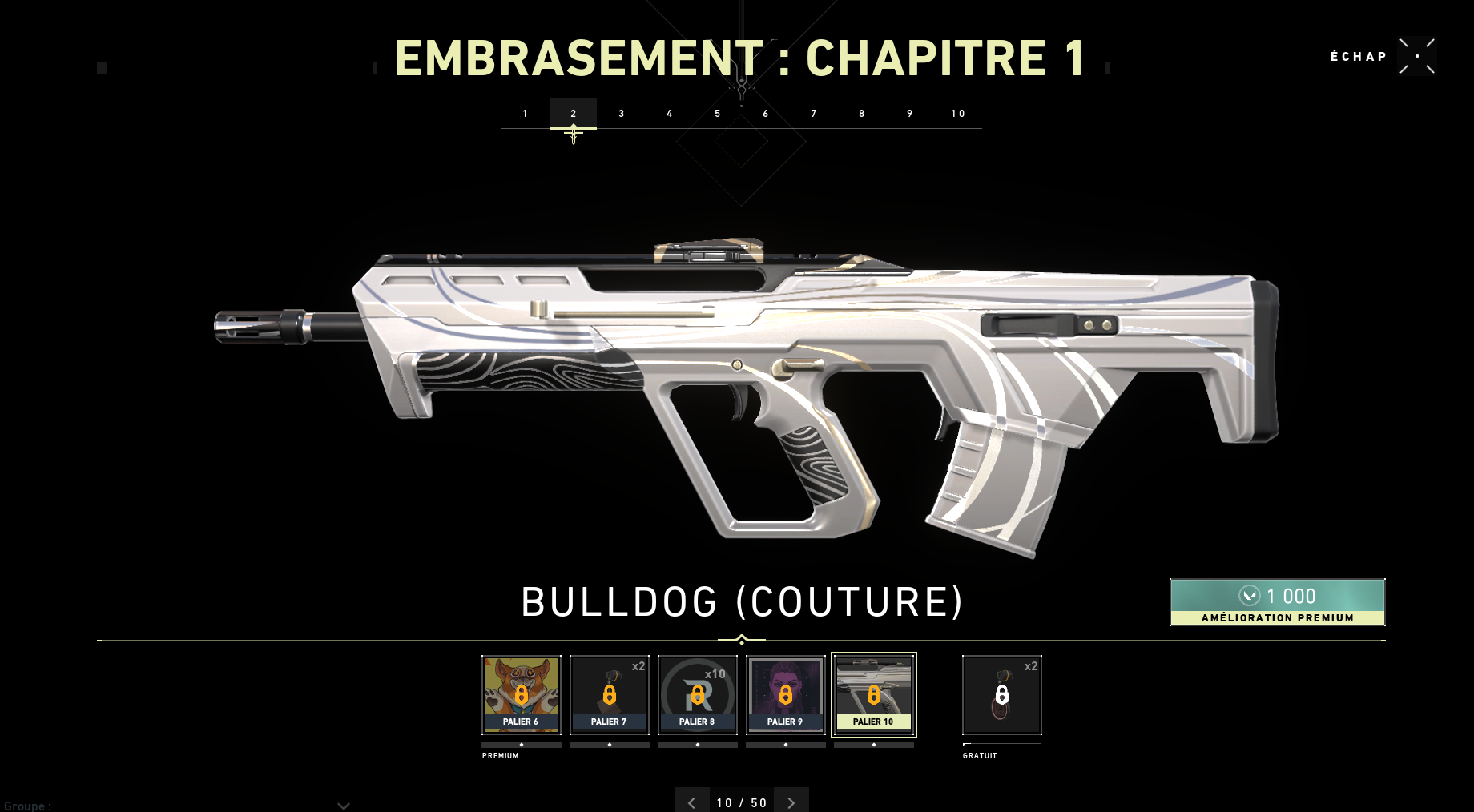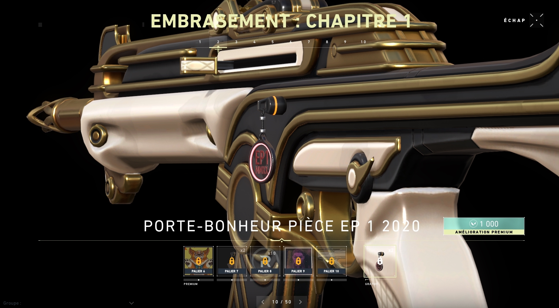 Pour débloquer le Battle Pass payant de l'épisode 1, il vous en coutera la somme de 1 000 Valorant Points (environ 10 €). VALORANT POINTS ( ou VP) , pour faire court, sont la monnaie premium qui permet de déverrouiller le contenu. Ils s'achètent uniquement avec de l'argent réel dans le client de VALORANT. Ils permettent également de déverrouiller les skins d'arme dans la boutique.