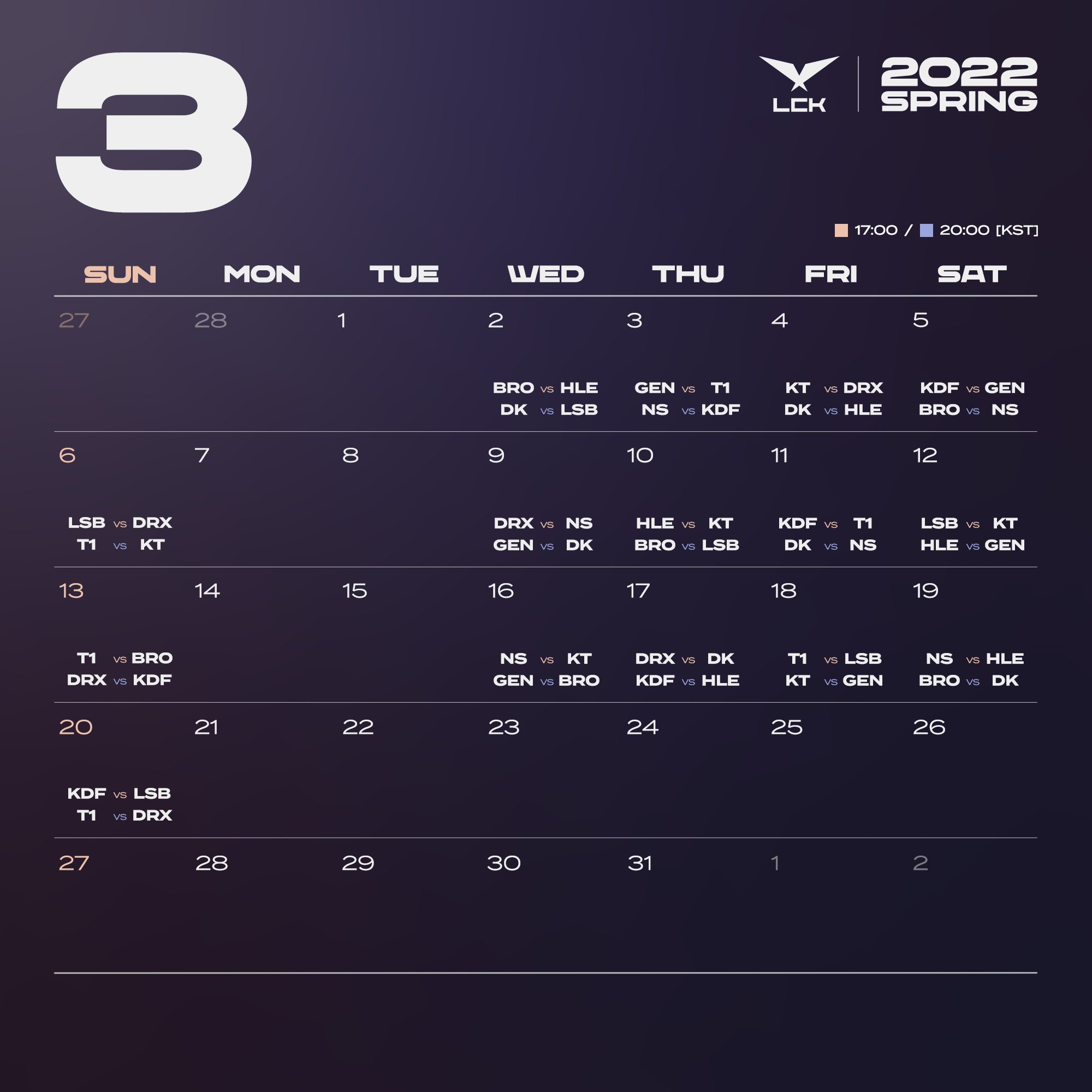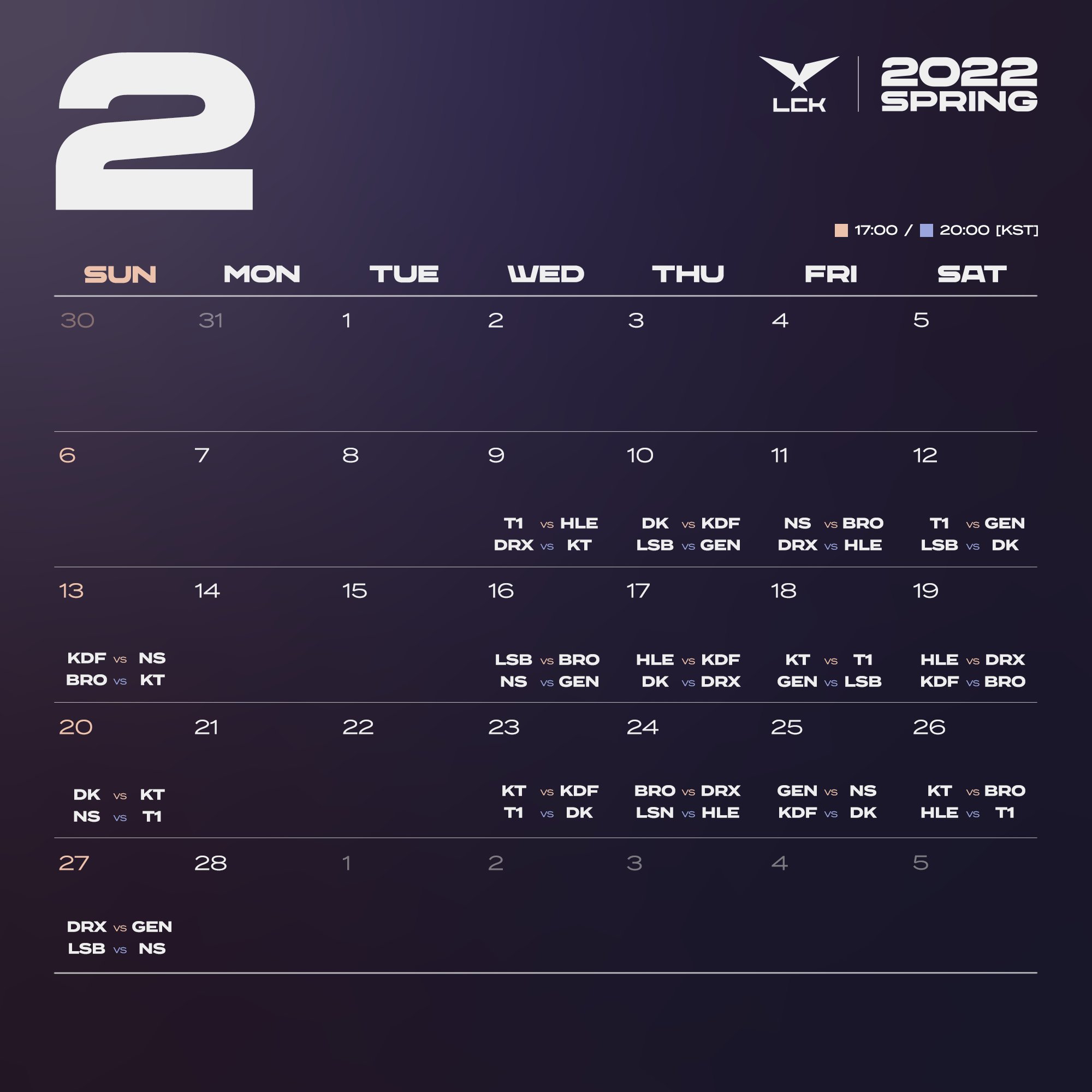 C'est maintenant confirmé, le coup d'envoi de la saison 2022 de la LCK sera donné le mercredi 12 janvier 2022 à 09h00 avec la rencontre DRX - Liiv SANDBOX ; la deuxième rencontre de cette première journée de championnat est programmée pour 12h et verra s'opposer T1 et Kwangdong Freecs.