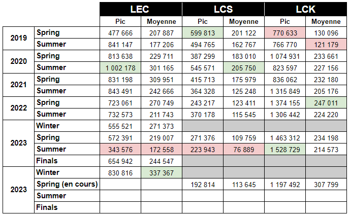 - LEC : 363 892 viewers (finale G2 vs MSF)