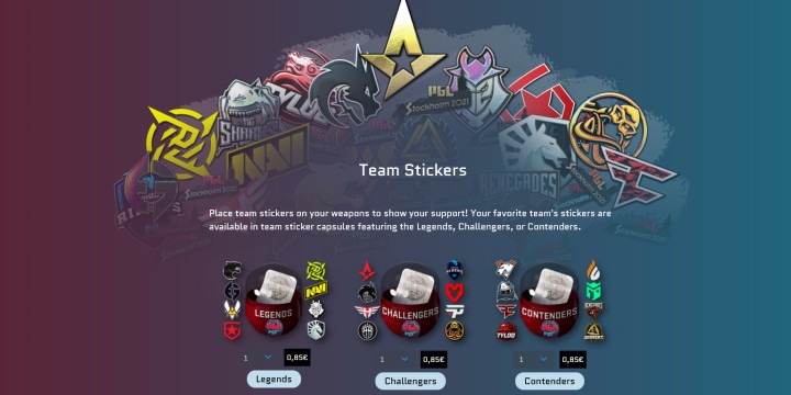 Parmi les items les plus recherchés se trouve l'autocollant dédié à la compétition avec le logo du PGL Major Stockholm en énorme dessus le tout doré bien entendu. Les capsules d'autocollants sont divisées en trois catégories, chacune à un prix de 0,85€. Ces trois groupes sont liés au statut des équipes : Contenders, Challengers ou Legends. Cette mise à jour offre également des patchs aux couleurs de chaque équipe de la compétition. Ces derniers peuvent être appliqués sur vos skins d'agents dans le jeu, comme c'est déjà le cas avec ceux proposés dans l'Opération Riptide par exemple. Ils sont également divisés en trois catégories, exactement de la même manière que les autocollants sauf qu'ils coûtent 1,70€.