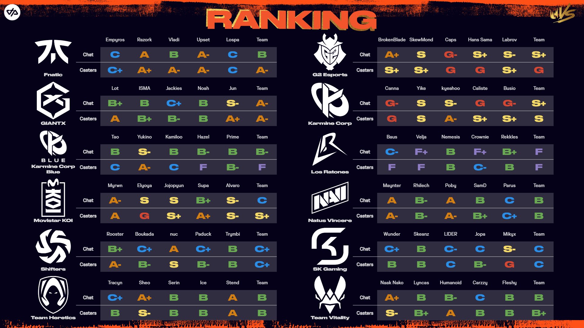En ce qui concerne la retransmission et le cast français, il sera bien evidemment assuré, comme l'année dernière, par le crew de la chaine OTP, et à ce titre, l'équipe a dévoilé hier soir au cours d'un live spécial leur Power Ranking des joueurs et équipes pour la ligue LEC.