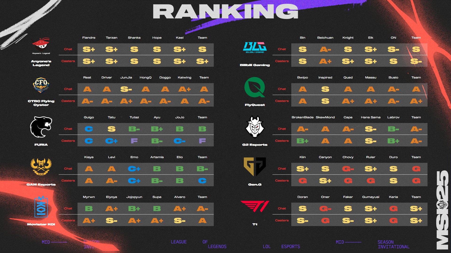 Voici le ranking final d'OTP des équipe qualifiées pour le MSI 2025 de League of Legends :