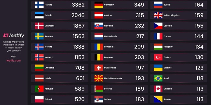 Outrepassons donc ce cas purement russophone. Car oui en terme de nombre ces pays sont de toute manière les plus présents et des statistiques n'étaient pas nécessaires pour s'en persuader. En revanche ce qui est intéressant c'est ce trop haut niveau de performance, et donc ce succès d'estime, que connait Counter-Strike dans les pays nordiques. On a toujours vu des talents suédois, norvégiens, danois ou finlandais illuminer les matchs, mais à la vue de ces statistiques c'est bel et bien dans ces pays que se trouve l'engouement le plus fort et à fortiori certainement le meilleur terroir pour dénicher les cracks de demain.
