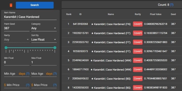 Pourquoi CSGOFloat et pas un autre site de revente ? Certainement parce que depuis le 5 septembre les frais de commission ont baissé à 2% ce qui rend ce site particulièrement attractif puisque c'est celui qui vous taxe le moins. Fort de la publicité qui lui avait été faite en amont, ce skin Karambit a de plus bénéficié d'une certaine attente des collectionneurs les plus farouches et son prix a grimpé jusqu'à atteindre 1 200 000$ selon les informations des initiés. Une somme qui peut sembler totalement délirante mais qui ne s'échange qu'en cryptomonnaie, dans ce cas précis en Bitcoin, ce qui fausse un peu les prix du marché étant donné les spéculations qui existent ces derniers temps entre cet argent virtuel et les skins en Chine. Dans tous les cas aujourd'hui il n'est déjà plus visible et a très certainement trouvé preneur sans qu'aucun nom n'ait été dévoilé.