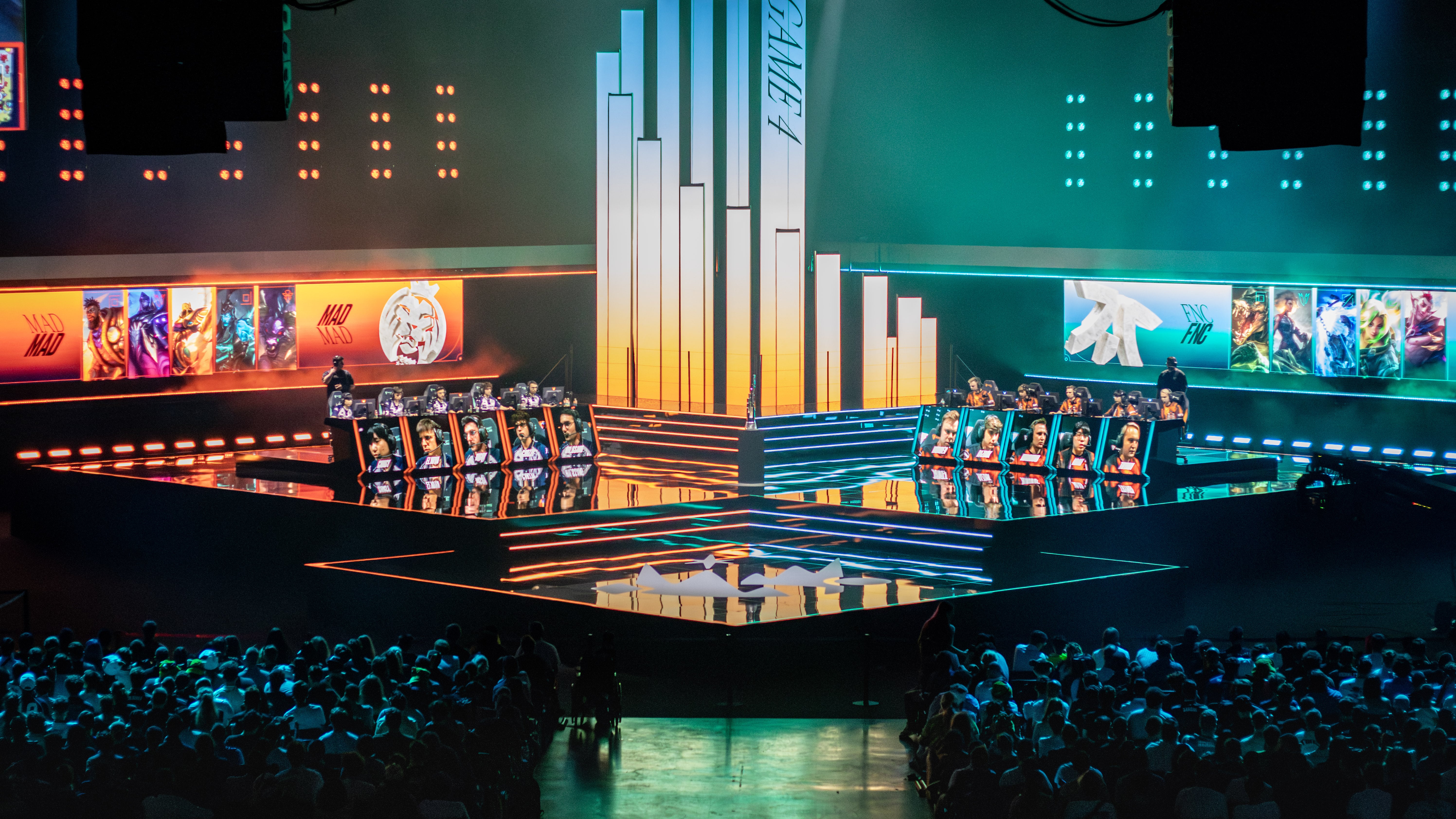 MAD Lions et Fnatic sur sur la grande scène de la Sud de France Arena, à Montpellier (c) Riot Games