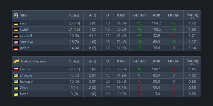 Les statistiques détaillées du match NAVI vs. BIG sur Cache (c) HLTV