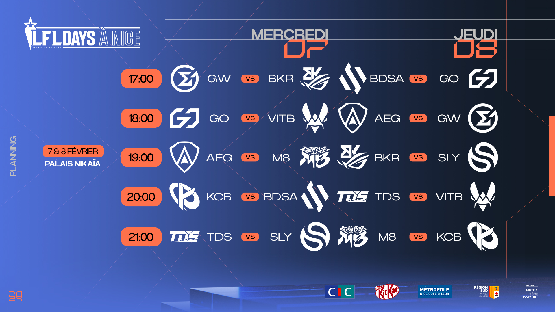 Mise à jour du 11 janv. 2024 : les organisateurs de la LFL ont procédé à l'ouverture de la billetterie pour les LFL Days de Nice prévus les 7 et 8 février, et ont également dévoilé le programme pour ces deux jours de compétition.
