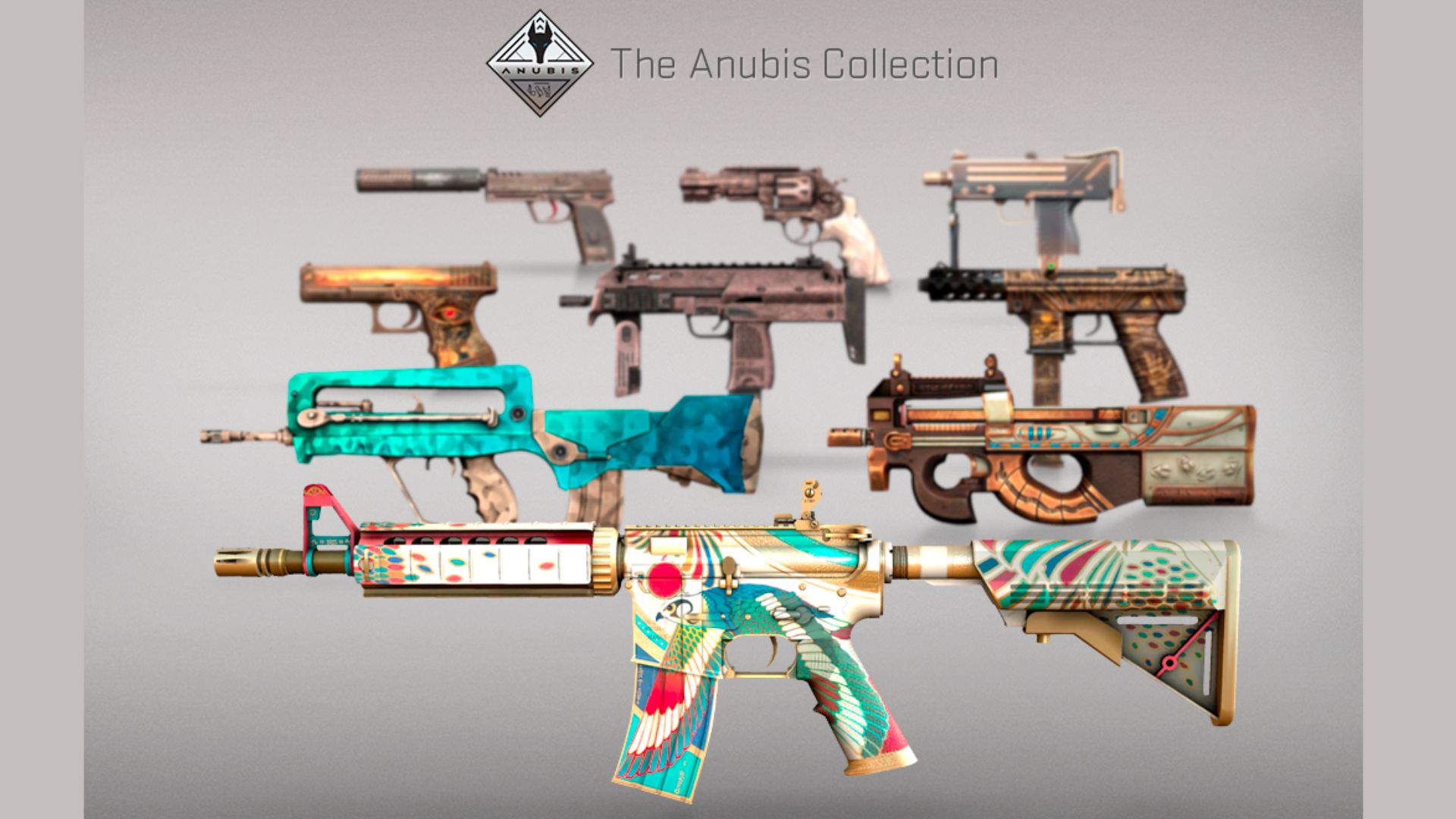 - Présentation de la collection Anubis comprenant 19 finitions d'armes sur le thème de la dernière carte ajoutée au catalogue compétitif de Counter-Strike.