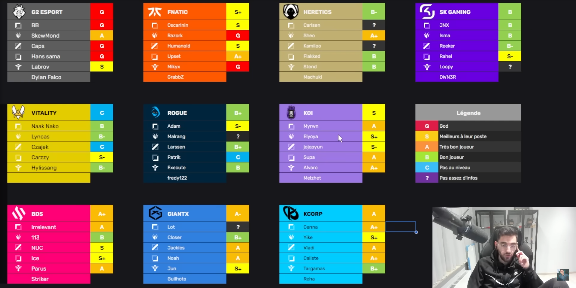 Enfin, d’autres équipes comme BDS et KOI obtiennent des évaluations plus optimistes. BDS, classée "A+", repose sur des talents solides comme Ice (S+), Irrelevant (A), et Nuc (S). "Ils ont une belle profondeur dans leur roster, et avec Striker à leur tête, ils pourraient surprendre cette année," analyse Nisqy. De son côté, KOI, avec des piliers comme Elyoya (S+) et JojoPyun (S-), se positionne comme un sérieux concurrent pour une place sur le podium, grâce à un mix réussi entre vétérans expérimentés et nouvelles recrues prometteuses.