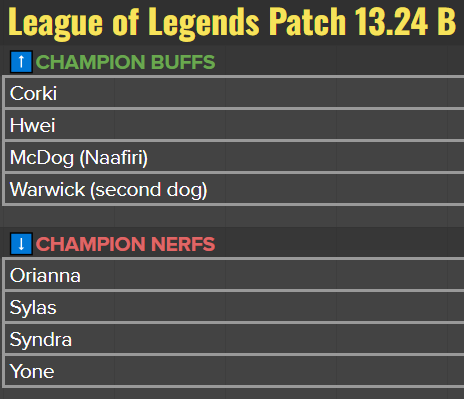 - Gragas : E - Réduction du délai de récupération : 40% ⇒ 25% ; E - Dégâts de base : 80/125/170/215/260 >> 80/115/150/185/220