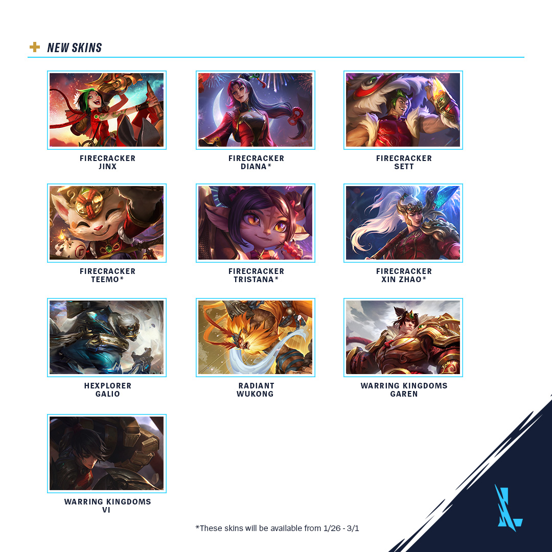 *Ces skins seront disponibles du 26/01 au 01/03.