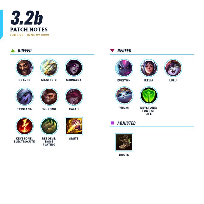 Bienvenue dans les notes du patch 3.2b ! Il s'agit du tout premier patch du Wild Rift Icons Global Championship 2022 ! Ça fait beaucoup de choses à voir, alors commençons sans plus attendre !