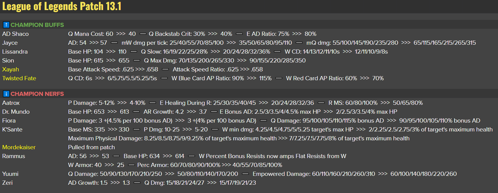 Liste des champions nerfs