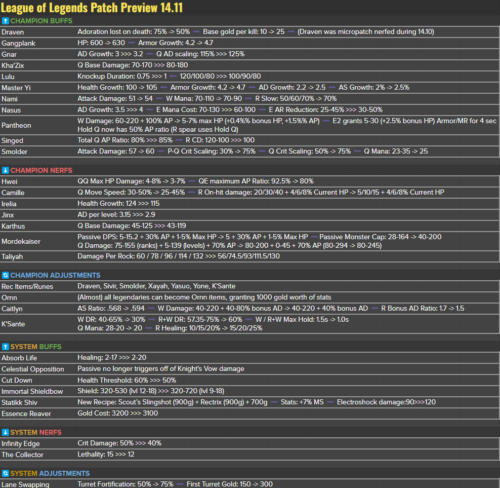 PREVIEW DES FUTURS ÉQUILIBRAGES DU PBE LOL 14.11