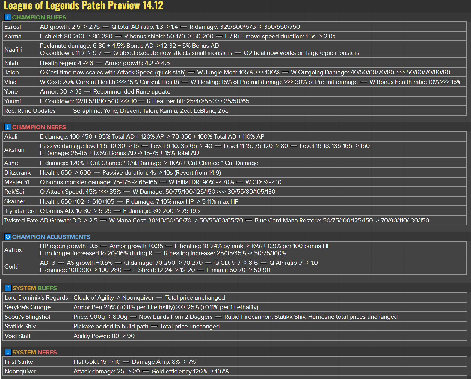 PREVIEW DES FUTURS ÉQUILIBRAGES DU PBE LOL 14.12
