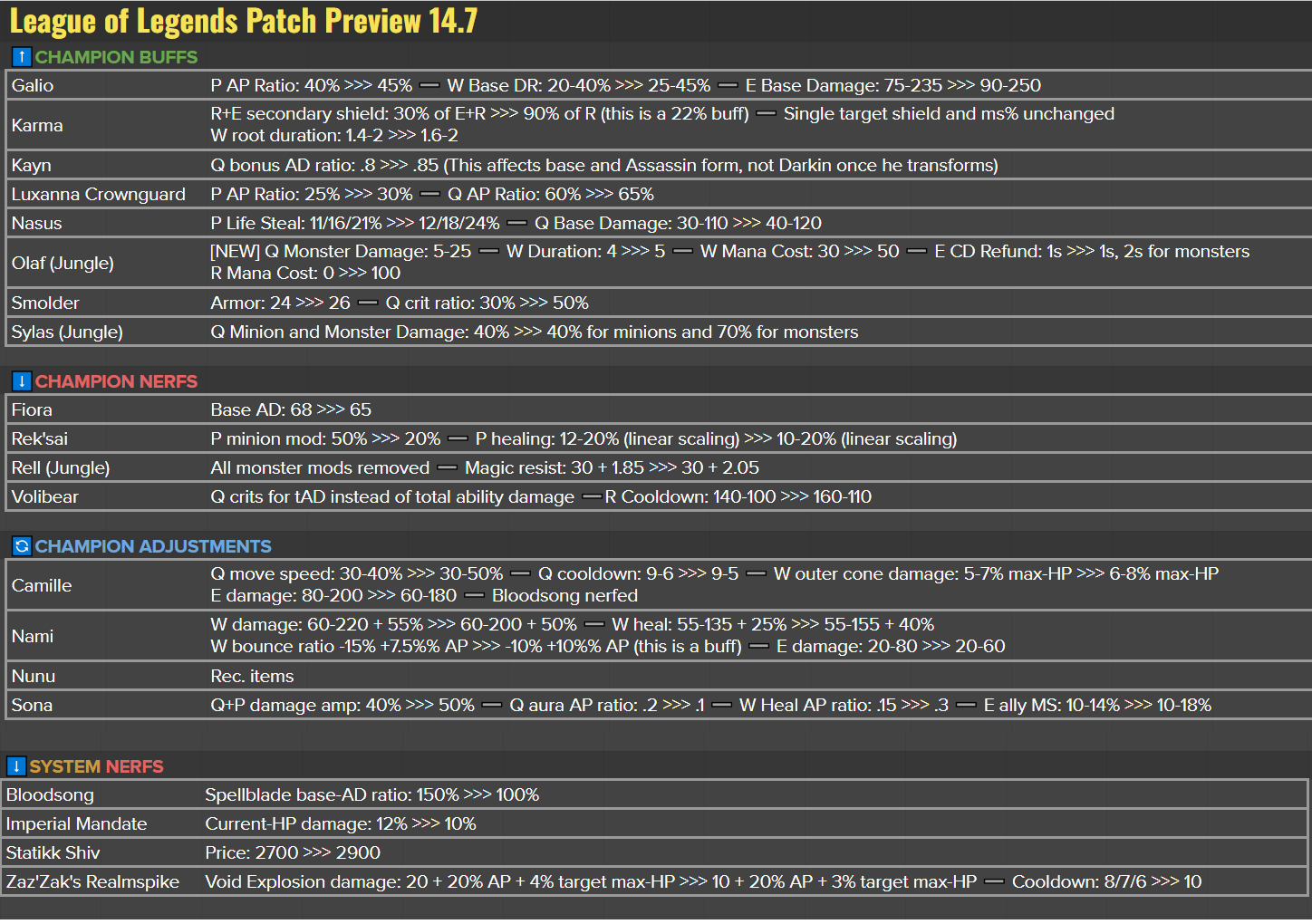 PREVIEW DES FUTURS ÉQUILIBRAGES PBE LOL 14.7