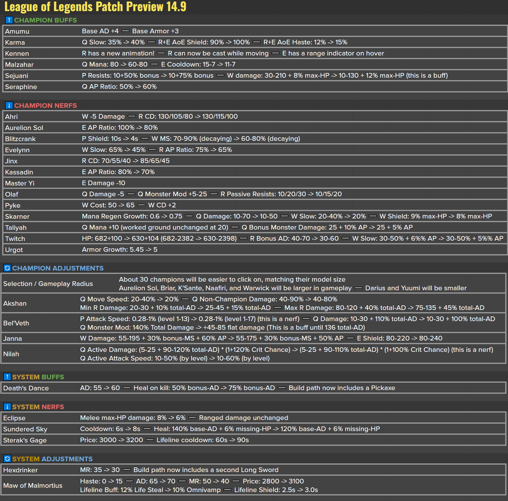 PREVIEW DES FUTURS ÉQUILIBRAGES DU PBE LOL 14.9