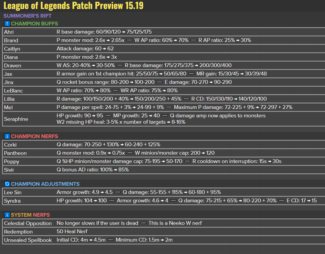 - Pantheon, Poppy et Corki subissent des nerfs sur leurs dégâts ou leur efficacité en jungle.