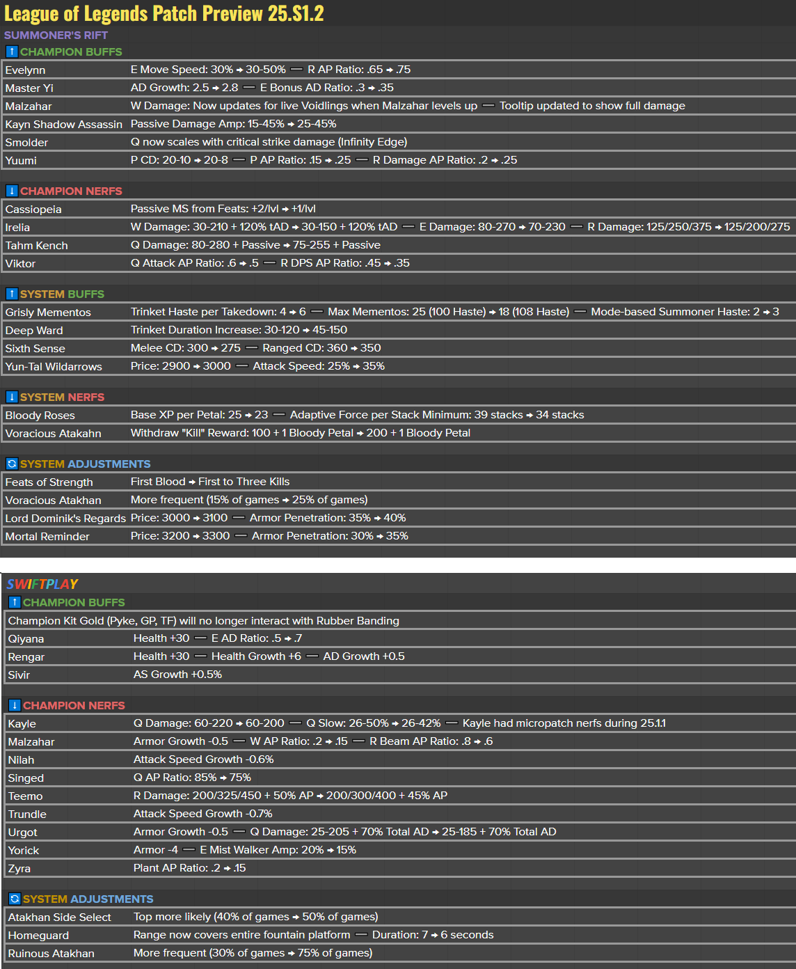 atch 25.S1.2 de League of Legends : Buffs, Nerfs et Ajustements