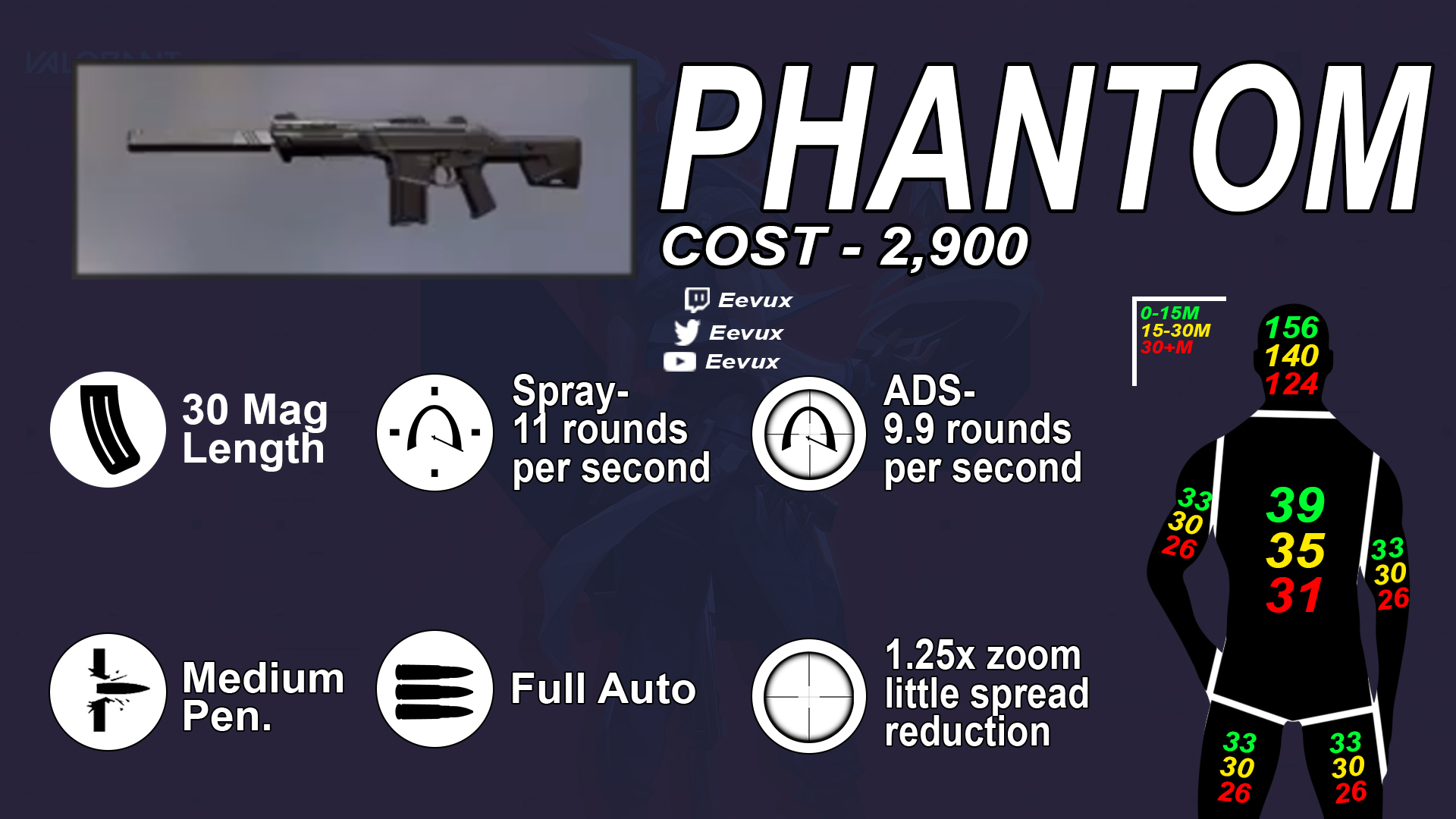 Classe : fusil Prix : 2900 $ Dégats : Wall penetration : moyen Munitions / Capacité : 30/90 Zomm : 1.25x Mode de tir : automatique Cadence de tir : 11 rounds/sec Tir alternative : automatique Cadence de tir alternative : 9.9 rounds/sec |