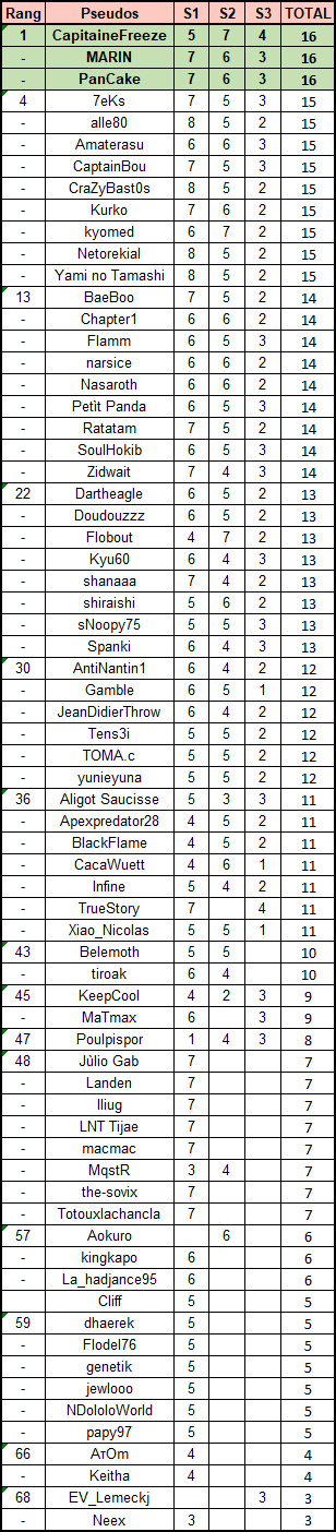 Le classement avant la quatrième semaine