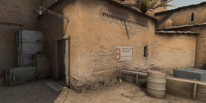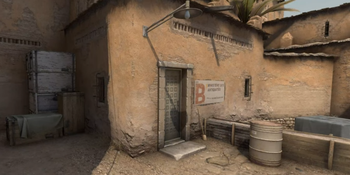 Une autre modification a été apportée à la carte, qui fait beaucoup moins parler certainement car beaucoup moins visible. Il s'agit de déplacements d'éléments du décor au niveau du site bombe B. La porte a ainsi été décalée sur le côté (à la place de l'ancienne fenêtre), le panneau indiquant que l'on se trouve bien en B a été agrandi et certaines textures sur le mur ont été retouchées. Le but ici est d'augmenter la visibilité des Terroristes depuis le tunnel au cas où un adversaire se trouverait à cet endroit là. En éclaircissant la zone, Valve espère régler un problème qui pouvait éventuellement avantager un Contre-Terroriste qui se fondait avec l'aspect grisâtre de la porte.