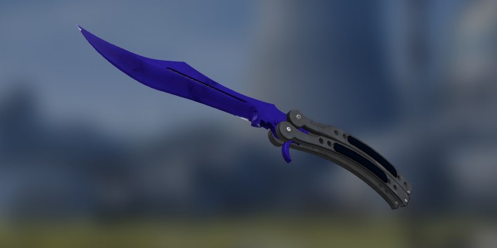 Si comme moi un jour vous avez eu la chance de sortir un couteau papillon d'une caisse, vous devez regretter de ne pas être tombé sur ce modèle qui est tout simplement hors de prix. Les couteaux sont les armes les plus chers de CSGO, mais ce modèle papillon Doppler avec la lame couleur saphir est vraiment le modèle qui sort du lot. Pour le posséder dans sa version ultime, c'est à dire neuf et équipé du StatTrak sur sa lame, il faudra débourser plus de 15 000€. Comme d'habitude ce prix est à mettre en comparaison avec la version basique usée qui vaut malgré tout 12 000€. Eh oui il s'agit tout simplement du couteau le plus onéreux dans son plus mauvais état.
