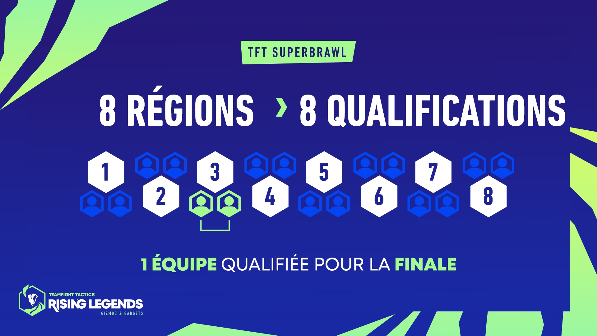 Le TFT Superbrawl sera un tournoi des 8 régions où 2 joueurs viendront représenter chaque région. Chaque équipe se disputera une place à la finale et une partie de la cagnotte de 5 000 €.