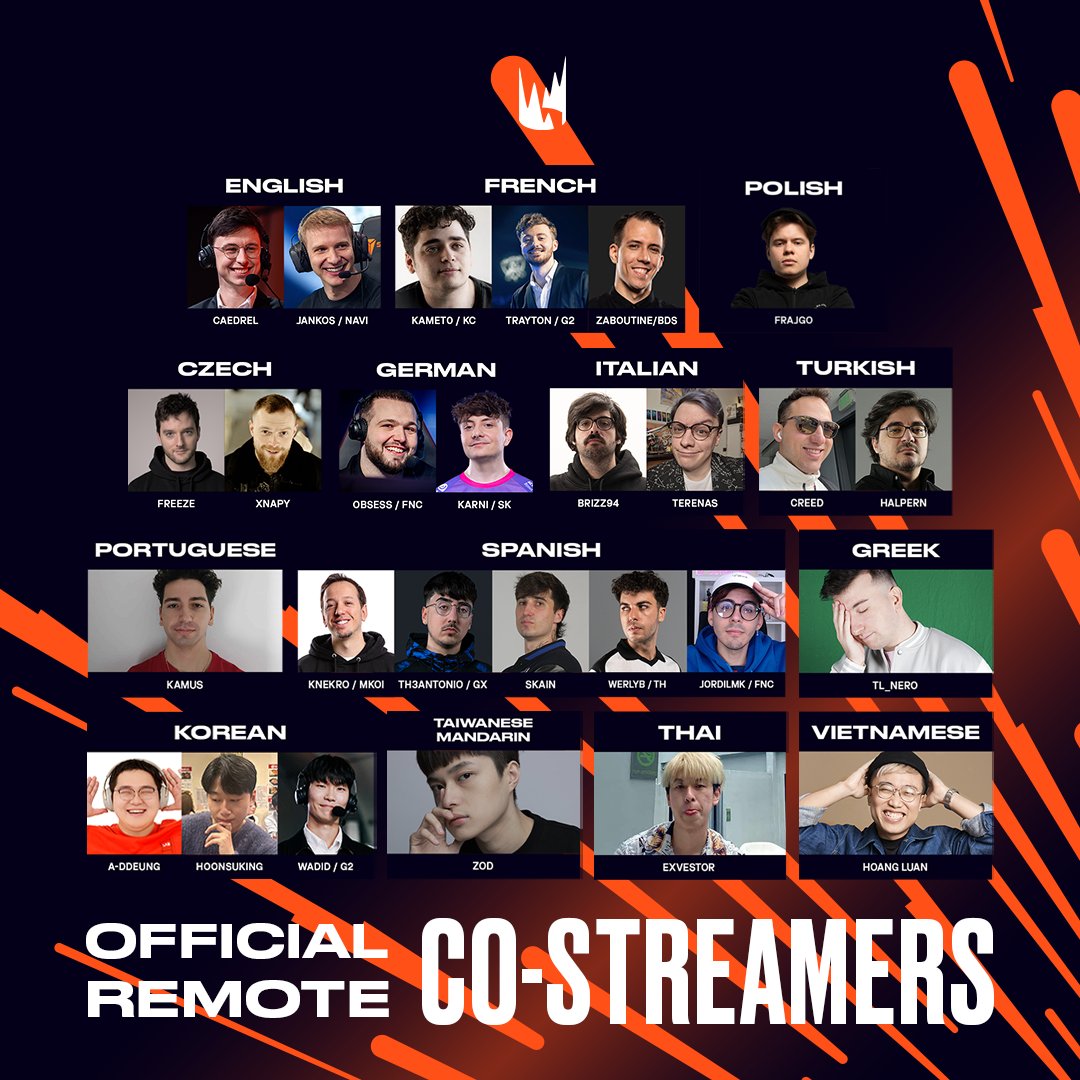 La scène francophone conserve ses visages familiers, avec Kameto (représentant de la Karmine Corp), Trayton (affilié à G2 Esports) et Zaboutine (lié à Team BDS), qui assureront à nouveau la co-diffusion du LEC en français.