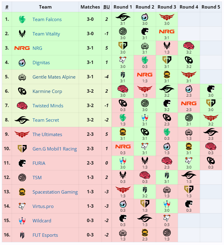 Les 32 meilleures équipes accèdent au Swiss Stage.