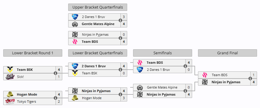 L'intégralité des résultats du Double Elimination Bracket (phase 1 de l'EU Open 1) est disponible ici.