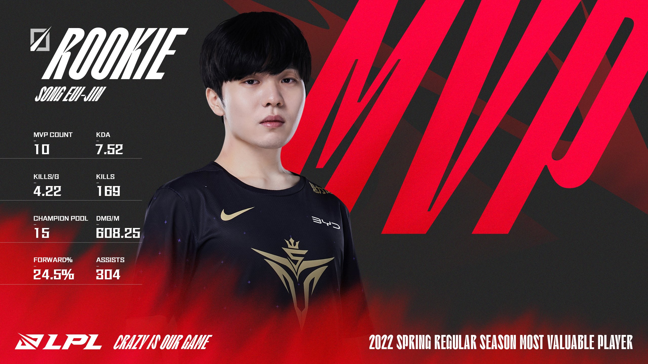 Rookie, le midlaner de l'équipe Victory Five, a reçu le prix du "Most Valuable Player" de la LPL Spring Split 2022, en récompense pour son niveau de jeu qu'il a preuve tout au long de la saison régulière.
