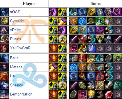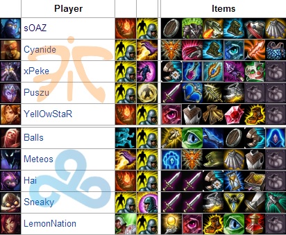 Meteos 6/10 : Nombreux étaient ceux qui se demandaient comment Meteos allait se comporter face à l'élite internationale, et bien nous avons eu notre réponse. Bien que meilleur que son opposant direct, notamment sur la gestion des smite, son style de jeu basé sur le farm, l'a empêché de venir aider ses mates lors de la dernière game. Ainsi, les C9 se sont fait enfoncer sans possibilité de come back.