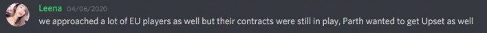 La situation est très floue pour plusieurs raisons. Déjà parce que Leena s'est défendue en soulignant un abus de langage. Elle aurait fait un raccourci puisqu'il s'agissait de parler à des fans sur un Discord communautaire. Quand elle a approché les joueurs, elle l'aurait fait en approchant leurs équipes et non pas les joueurs directement. Difficile de savoir la vraie vérité, mais c'est une ligne de défense qui peut se tenir.