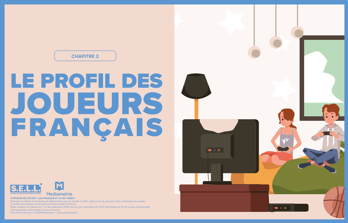 "Données recueillies et analysées par Médiamétrie pour le compte du SELL, dans le but de mesurer et de comprendre les usages et profils des joueuses et des joueurs de jeux vidéo en France.