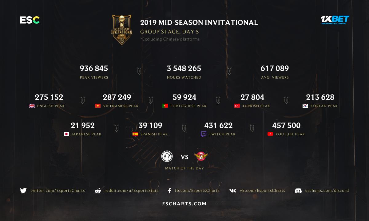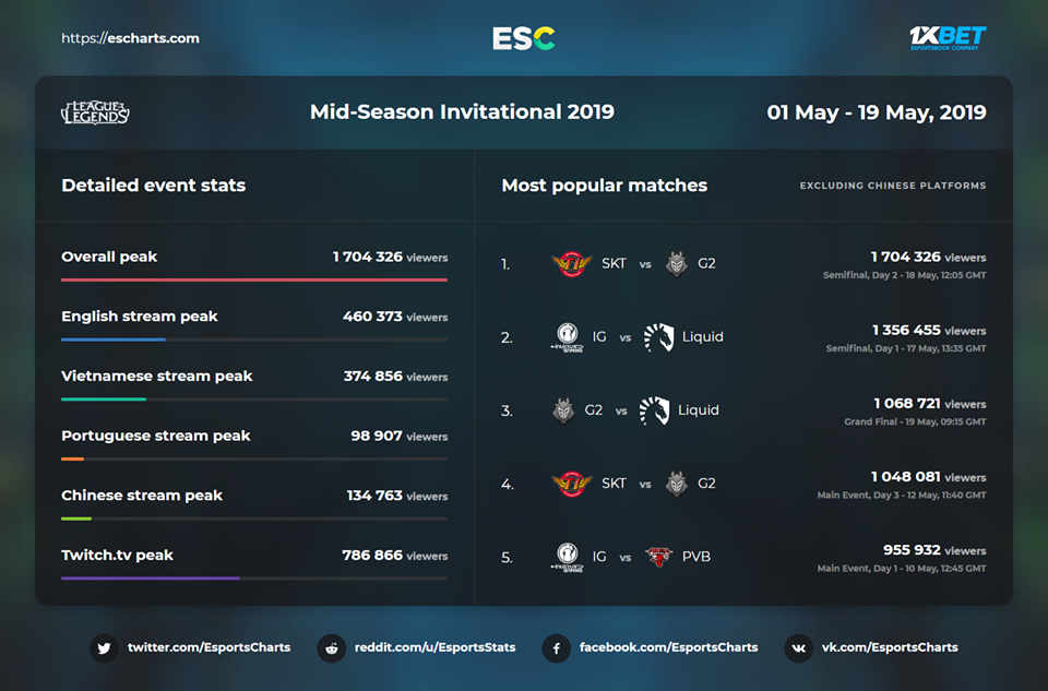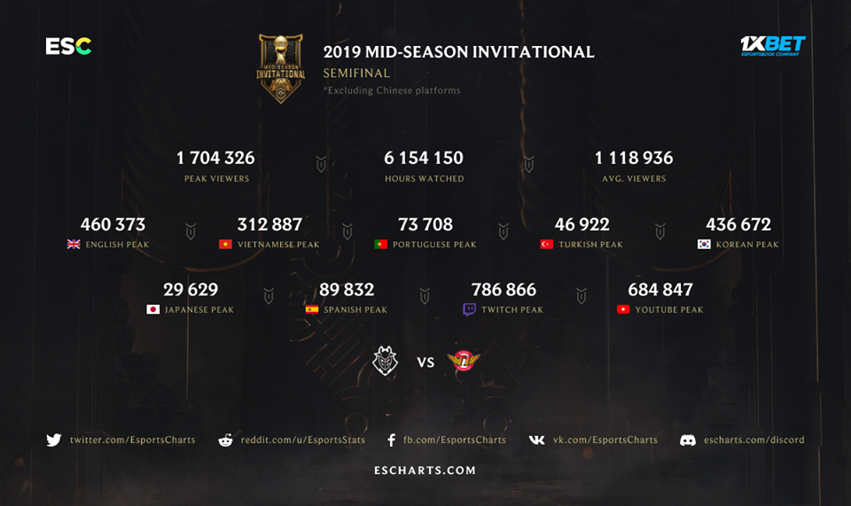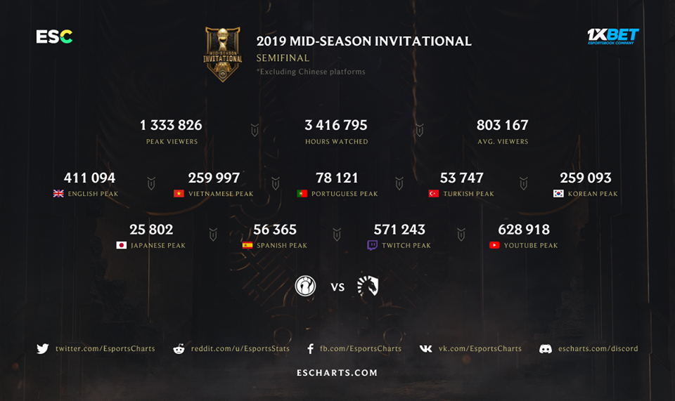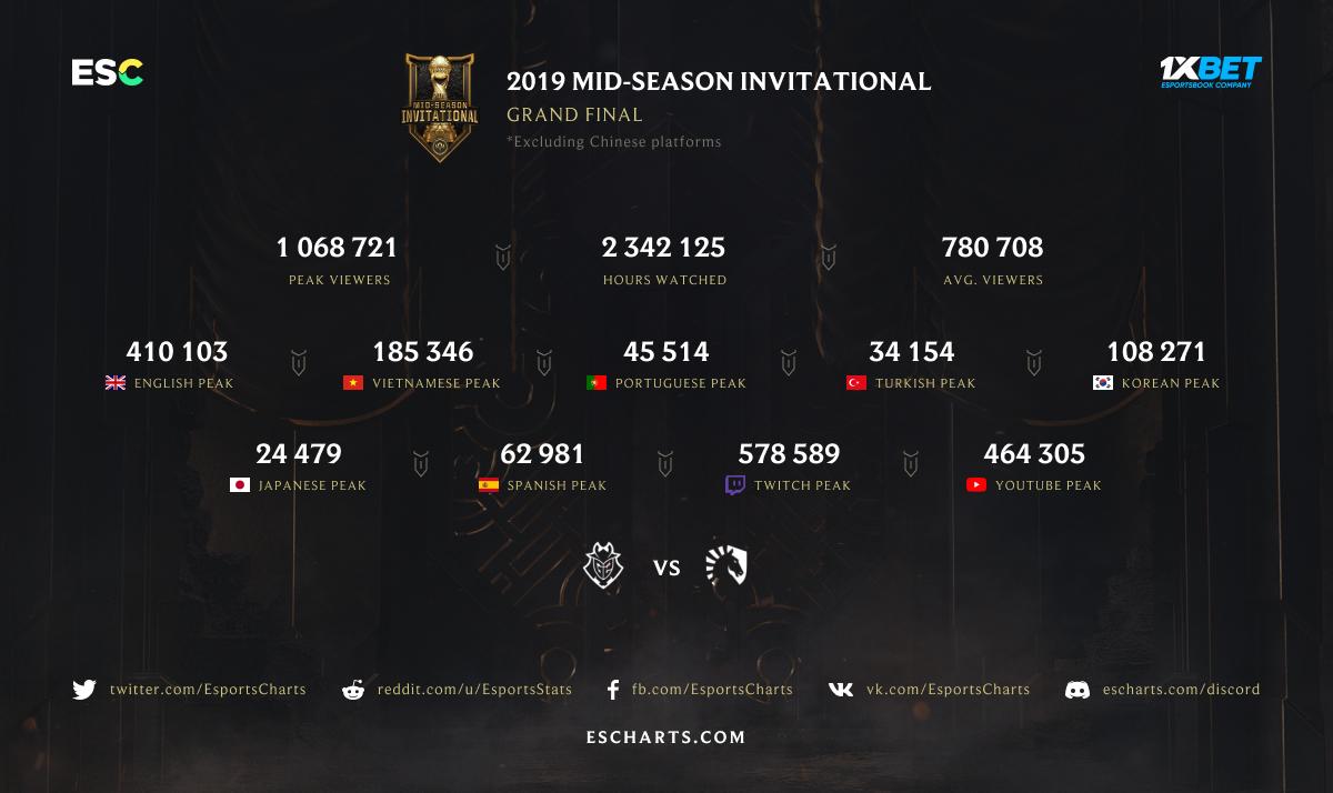Pour cette édition 2019 du Mid-Season Invitational (MSI), les demi-finales ont eu plus de succès que la grande finale. Retour en chiffres sur ce premier tournoi international de la saison qui enregistre de meilleurs résultats que l'année dernière.