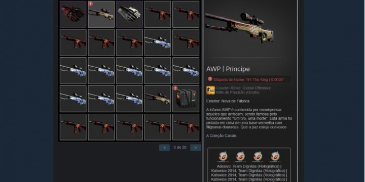 Dans l'inventaire pléthorique de notre collectionneur on retrouve aussi 24 M4A4 | Howl (Hurlement), 13 autocollants Titan Katowice 2014, 13 AWP | The Prince (Prince) dont un en particulier qui a appartenu aux frères Teles (Henrique "HEN1" Teles et Lucas "LUCAS1" Teles) qui y avaient accolé 4 stickers Dignitas Katowice 2014 et qui serait estimé aujourd'hui aux alentours de 80 000$. Aujourd'hui l'annonce concernant la vente de l'AK-47 | Vulcan a été retirée, certainement que Lunar a trouvé un acheteur pour cet objet. Quoi qu'il en soit la spéculation autour des skins Counter-Strike: Global Offensive se poursuit toujours sur fond de cryptomonnaies sur lesquels les collectionneurs se reposent également énormément.